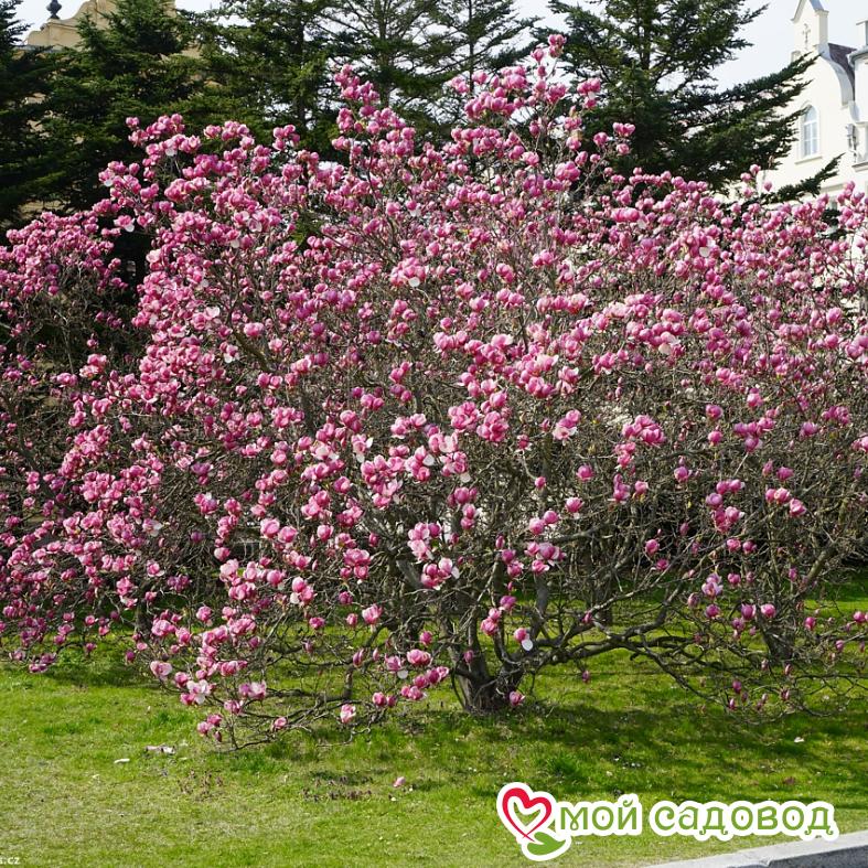 Магнолия Rustica Rubra — новый сорт с красивыми бокаловидными и крупными цветками. Цветы округлой формы, розово-красного цвета снаружи, а внутри бело-розовые, распускаются в конце апреля до начала мая. Растет в виде невысокого деревца с низкой кроной или как широкий кустарник высотой до 5-7 метров. Растение распускает свои цветки на голых ветках. Предпочитает гумусовые свежие пропускаемые почвы, защищенные места.