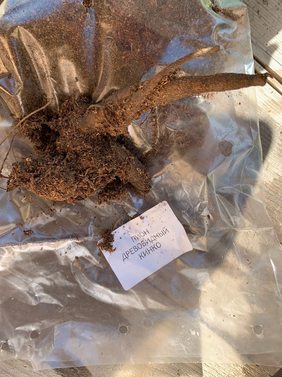 Пион «Кинко» представляет собой древовидный кустарник с необычными золотистыми цветками корончатой формы, имеющими эффектную ярко-красную окантовку и достигающими в диаметре 17 см. Растение отличается обильным цветением и при создании благоприятных условий вырастает до 1,5 метров. «Кинко» достаточно нетребователен к составу и качеству грунта, однако лучше себя чувствует на щелочных плодородных почвах. Пион древовидный — морозоустойчивый кустарник, достигающий высоты до 2 м, с крупными ярко-зелеными листьями. На одном кусте может быть от 30 до 70 цветков. Диаметр каждого от 20 до 25 см. Продолжительность цветения 12—14 дней. Растение декоративно и после цветения из-за необычной формы листьев. Пион неприхотлив, устойчив к болезням. На одном месте без пересадки может расти более 20 лет. Место посадки Для посадки пионов понадобится защищенное от ветров место с хорошей освещенностью. Сорта светлой окраски, а также пионы с простыми и полумахровыми цветками можно посадить на частично затеняемом участке, это продлит цветение и защитит цветы от выгорания. ХРАНЕНИЕ ДО ПОСАДКИ: После получения посылки, рекомендуем вскрыть пакет и осмотреть корневище. Почки должны быть плотные и розового цвета. Так же уделите внимание самому корневищу, все сомнительные, потемневшие, сморщенные части удалите, а места среза обработайте зеленкой или залой. Если почки еще не тронулись в рост, а высаживать в открытый почву рано, советуем Вам хранить корневище в холодильнике, обязательно оставляя его в пакете с торфяной смесью или в коробке под снегом. Если почки успели раскрыться это не критично, сохранить до посадки их так же возможно, высадите корень пиона в большой просторный горшок или в любую другую ёмкость.