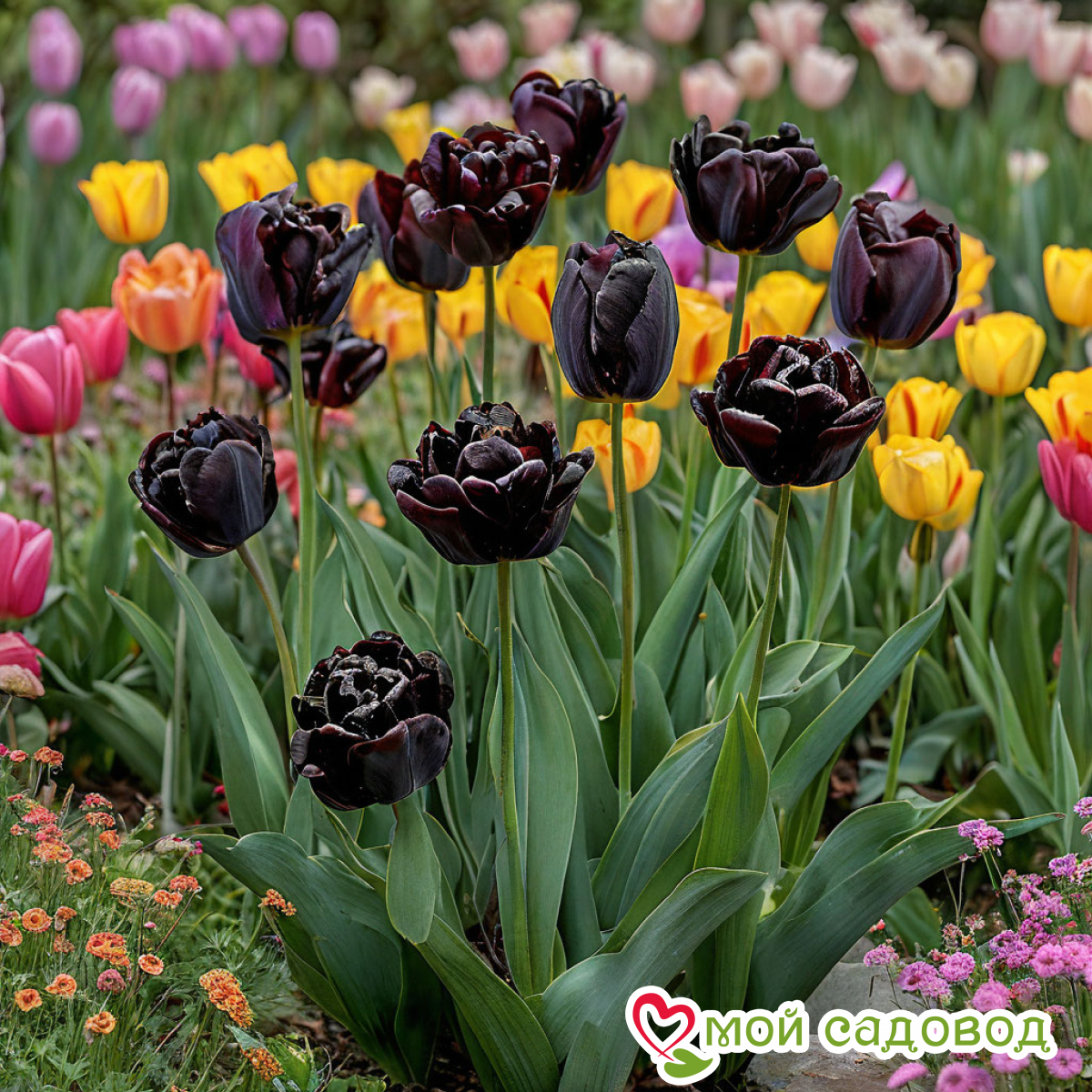 Читать далееМахровый тюльпан «Рейдинс Дарк» – это уникальное растение, которое станет настоящей изюминкой вашего сада. Высота растения достигает 35–45 см, что делает его идеальным для создания ярких цветочных композиций. Листья насыщенного зеленого цвета, крупные и широкие, придают «Рейдинс Дарк» эффектный вид. Основная характеристика сорта – его темный, практически черный цвет цветков, который особенно притягателен в контексте весеннего цветения.