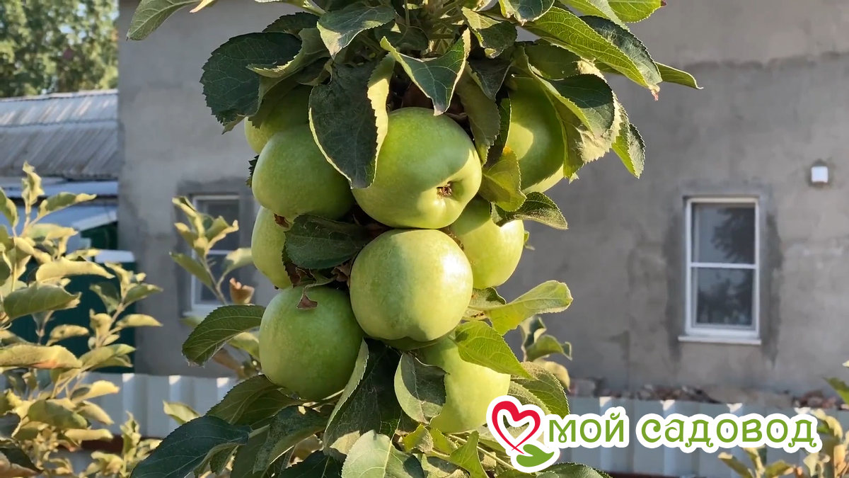 Зимнего срока потребления. Дерево колонновидное, среднерастущее. Плоды крупные, средней массой 200 г, приплюснутые, правильной формы.  Основная окраска зеленовато-желтая, покровная — на большей части плода размытая, темно-красная. Мякоть желтоватая, колющаяся, мелкозернистая, сочная, кисловато-сладкого вкуса. Дегустационная оценка вкуса — 4,5 балла.  В плодоношение вступает на 3-4-ый год. Иммунный к парше. Зимостойкий. Дерево отличается средней силой роста, в высоту достигает 2,5 м, имеет пирамидальную крону и тёмно-зелёные гладкие листья. Побеги толстые, крепкие, опушенные, цветки — розоватые, с овальными лепестками, имеют приятный аромат.